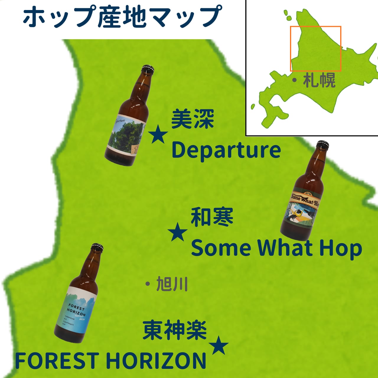 2025年に北海道で収穫されたホップだけを使用したビール3種がついに出そろいました!東神楽産ホップ100%使用の「FOREST HORIZON」・和寒産ホップ100%使用の「Some What Hop」・美深産ホップ100%使用の「Departure」を各2本、6本セットでお届けします!